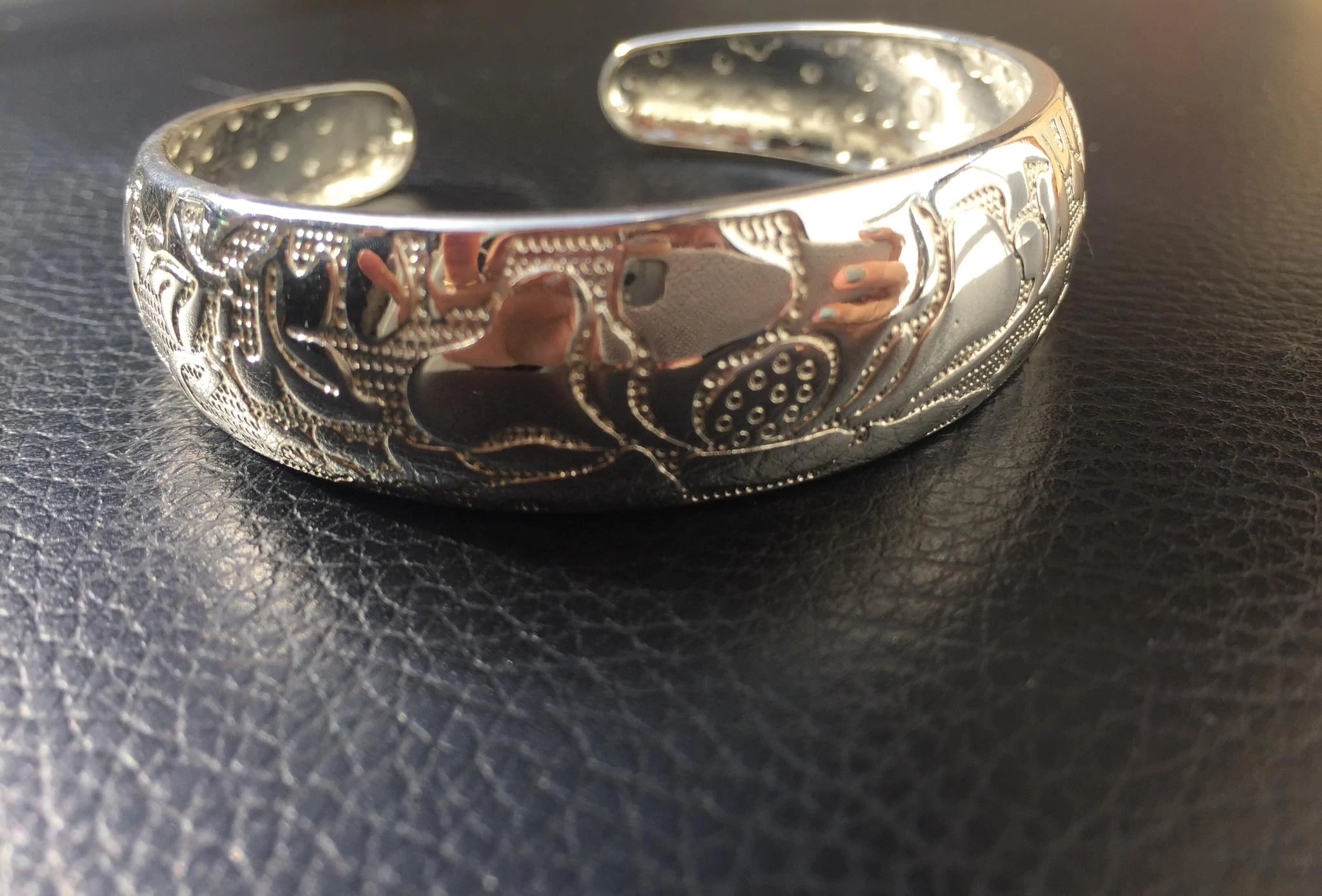 Lótusz mintás vésett merev karkötő